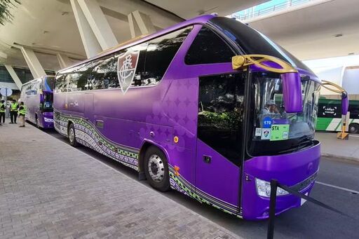 - Ônibus do Fluminense no desembarque em Jeddah, Arábia Saudita, para a disputa do Mundial de Clubes — Foto: Edson Viana/ge