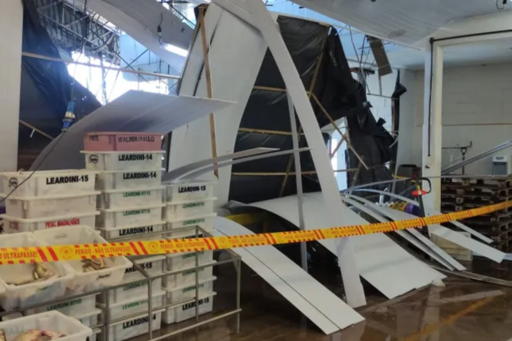 Em Navegantes, no Litoral Norte, duas mulheres foram pisoteadas depois que uma parede de PVC desabou em uma empresa e funcionários correram.