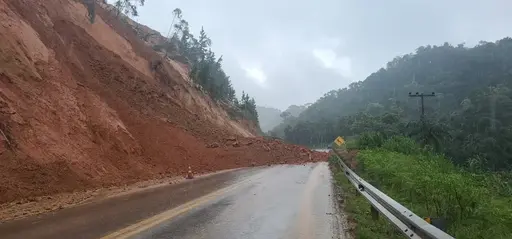 O deslizamento ocorreu por volta das 16h de domingo (12) em função das fortes chuvas que atingem a região. A interdição continuava na manhã deste segunda-feira (13), sem previsão para liberação, de acordo com a Polícia Rodoviária Federal (PRF).