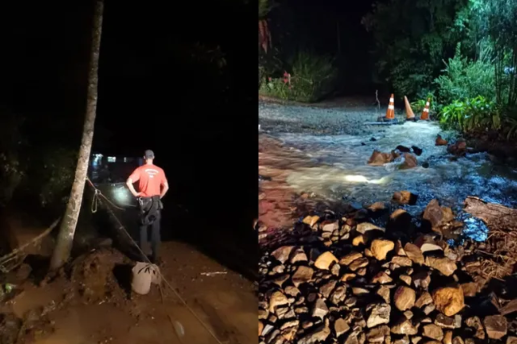 Segundo os bombeiros, oito casas foram afetadas pela água e quatro moradores precisaram de resgate. Também foi registrado um deslizamento com queda de árvore. A Defesa Civil municipal acompanhou a ocorrência.
