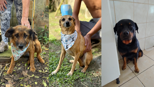 Já o Mutante, um Rottweiler de 3 anos, se destaca pela inteligência e docilidade. Sociável e tranquilo, ele adora passear e interagir com pessoas, sendo uma ótima opção para famílias que buscam um cão companheiro.