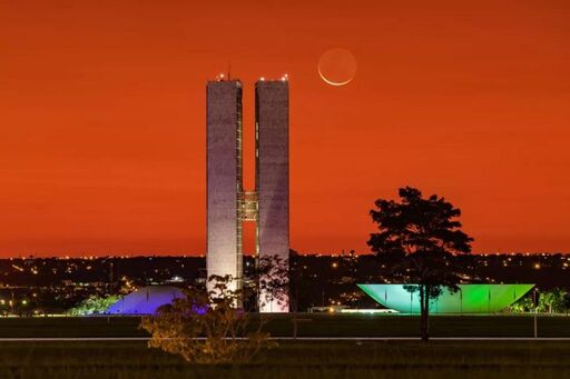 - Nascer do Sol deixa céu de Brasília vermelho. — Foto: Leo Caldas/Arquivo pessoal