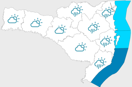 O cenário se repete na quinta-feira (10), onde a chuva continua influenciada pelos ventos úmidos que vêm do mar. Em alguns momentos, pode chover com maior intensidade, principalmente entre a região de Laguna e a Grande Florianópolis. A agitação marítima permanece, com ondas entre 2,5 e 3 metros.