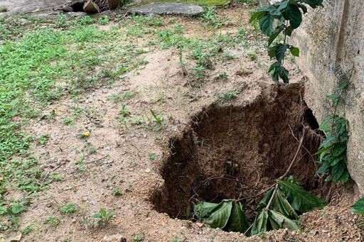 Os buracos já apresentam uma profundidade considerável e estão expondo a rede de abastecimento provavelmente da rua, onde o morador se preocupa de que causando mais alguma erosão venha a danificar a rede e interrompendo também o abastecimento de água da rua e até mesmo de outros locais no bairro.