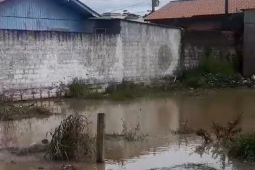 Moradora de Nova Brasília filma rua alagada após chuvas do final de semana; vídeo