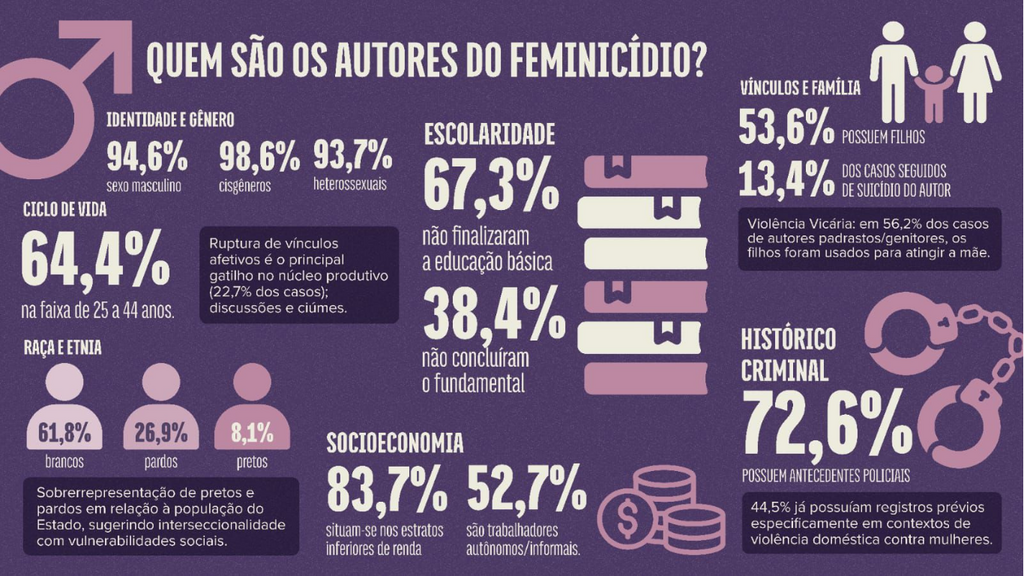 Outro dado relevante mostra que 68,9% das mulheres assassinadas já tinham histórico prévio de violência. Em muitos casos, porém, essas agressões não chegaram a ser formalizadas nos sistemas de saúde, assistência social ou segurança pública.