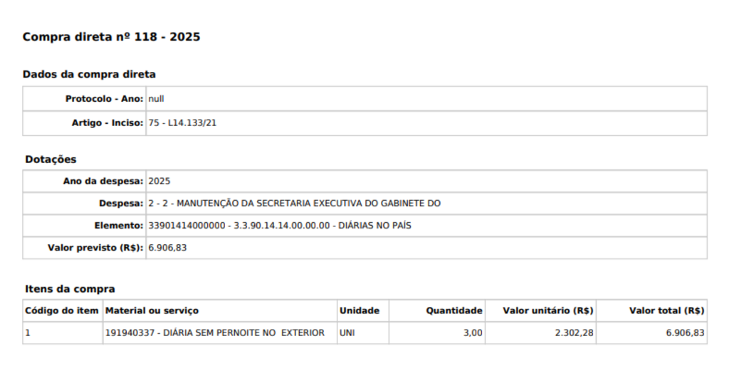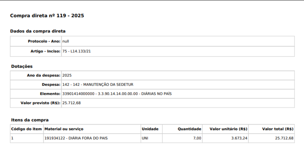 Em busca de esclarecimentos, o repórter procurou a Secretaria de Comunicação do município, que confirmou que não houve gastos com voos e hospedagem, mas explicou que houve outras despesas vinculadas à missão oficial, totalizando R$32.619,51.