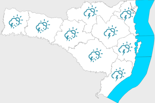 Entre quinta-feira (23) e sexta-feira (24), novas perturbações nos ventos elevados devem intensificar o quadro de instabilidade, trazendo temporais isolados entre as tardes e noites em todas as regiões de Santa Catarina.
