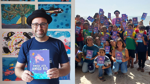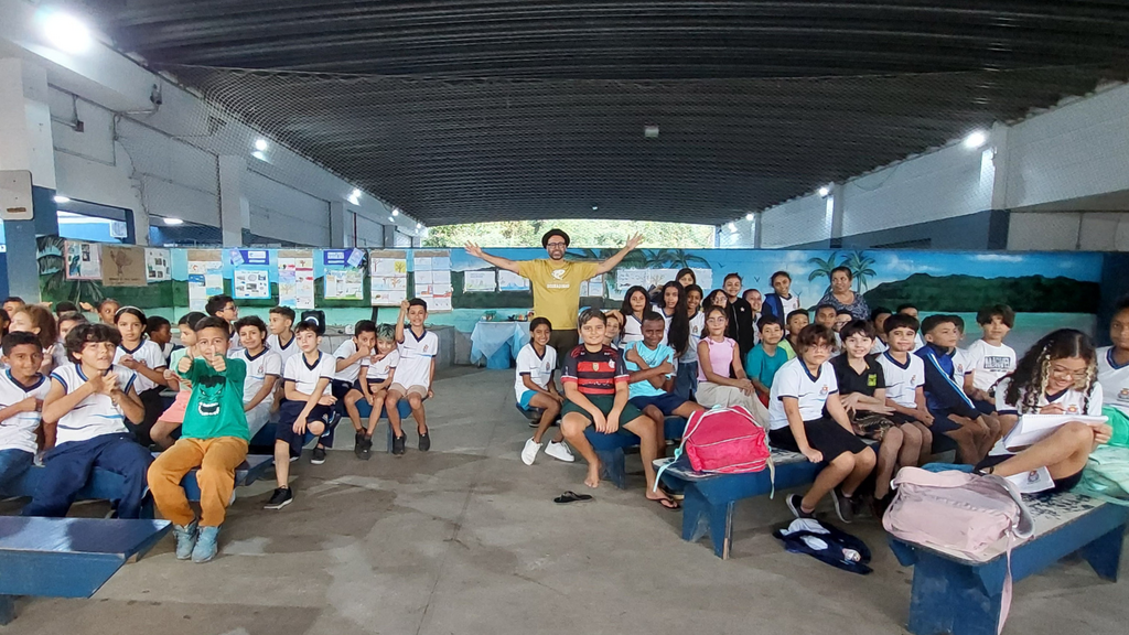 Durante as atividades, Thiago conversa com os alunos sobre o livro “Amiga Lata, Amigo Rio”, que inspira reflexões sobre o meio ambiente e o papel de cada pessoa na transformação do planeta. O projeto também oferece materiais digitais, animações e cursos on-line, ampliando o alcance das ações nas escolas.