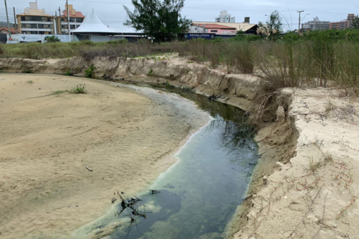 - Relatos descreviam uma água suja, com aparência de esgoto, desaguando na referida praia. - Foto: divulgação/RSC Portal