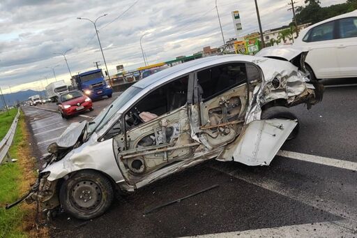 Na manhã desta quarta-feira (12), um acidente envolvendo um carro e um caminhão foi registrado na BR-101, em Imbituba, próximo ao km 276, no sentido sul, nas imediações do posto de gasolina do Alto Arroio.