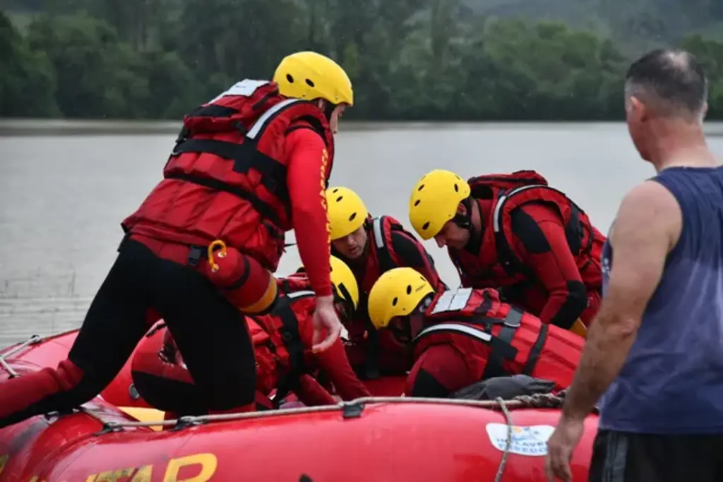 Um homem de 40 anos e o cachorro dele foram resgatados de uma enchente em Rio do Sul, no Vale do Itajaí, no domingo (8). O morador estava agarrado a um poste com hipotermia. Já o animal foi encontrado preso em uma árvore e ajudou o dono a se esquentar após os dos serem encontrados pelos bombeiros.