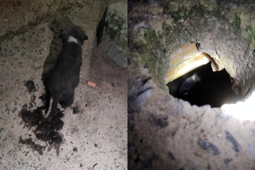 Filhote de cachorro é resgatado após cair em buraco de fossa na cidade de Imbituba