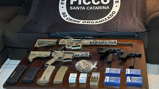 No interior do imóvel, foram apreendidos dois fuzis, duas pistolas e uma grande quantidade de munições. Diante do material encontrado, o homem também recebeu voz de prisão por porte ilegal de arma de fogo de uso restrito. Conforme os investigadores, ele possui extensa ficha criminal em Santa Catarina e é apontado como um dos líderes de uma organização criminosa com atuação no estado.