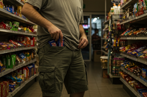 Imagem gerada por IA - Homem é preso por furtar chocolates e ameaçar fiscal com faca em supermercado de Imbituba