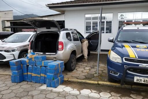 O automóvel foi abordado enquanto descia a Serra do Corvo Branco, na SC-370. A droga estava dentro do porta-malas e no banco traseiro do veículo.