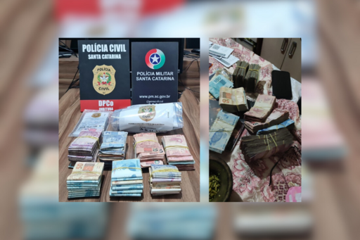 Na comarca de Imbituba, as polícias civil e militar cumpriram três mandados de busca e apreensão em residências situadas nos bairros Arroio e Centro. Foram apreendidos mais de R$39.000,00 em espécie, além de diversos celulares e documentos de interesse para a investigação.