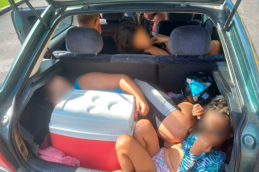 No último domingo (5), um homem, morador de Palhoça, foi parado pela Polícia Rodoviária em Paulo Lopes, enquanto levava a esposa e cinco filhos para passar o dia em uma praia de Imbituba. O que chamou a atenção das autoridades foi o fato de que duas das crianças, de 8 e 11 anos, estavam no porta-malas do automóvel, dividindo o espaço com sacolas e uma caixa térmica.