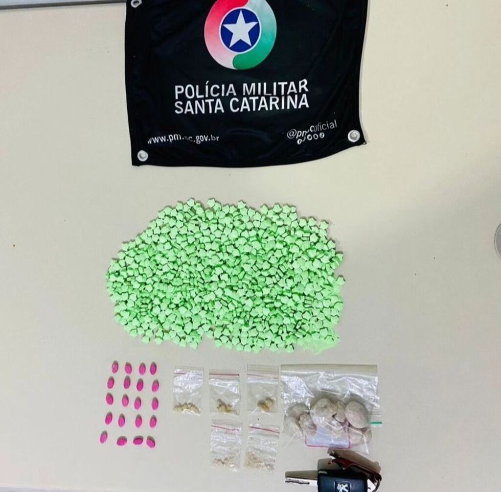 Foram apreendidos um torrão de maconha, LSD e cocaína durante a abordagem.