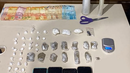 No interior do terreno onde o suspeito estava, os policiais encontraram uma mulher, que informou ser esposa do homem que havia fugido instantes antes. Diante da situação, a equipe iniciou uma busca detalhada nas imediações. Foi então que localizaram porções de droga, além de celulares, dinheiro fracionado, indício comum de comercialização e uma balança de precisão, equipamento frequentemente utilizado na preparação e pesagem de entorpecentes.