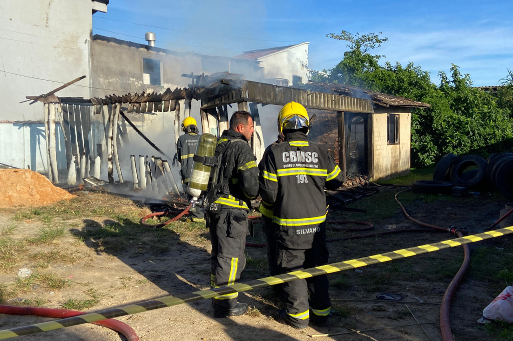 Um incêndio de grandes proporções atingiu uma residência na manhã desta quinta-feira (15), no bairro Nova Brasília, em Imbituba. O Corpo de Bombeiros foi acionado por volta das 7h56 para conter as chamas em uma casa localizada na rua 6124, próximo ao ginásio de esportes, construída parcialmente em madeira e alvenaria. No local, moravam dois irmãos.